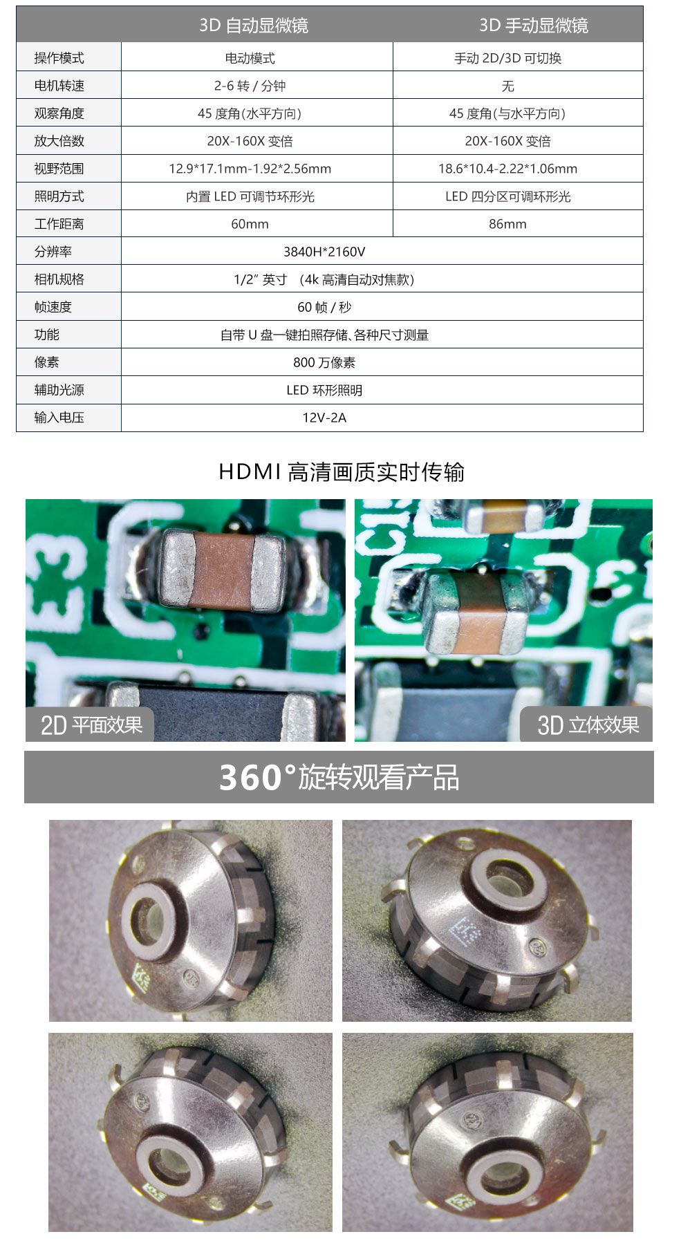 3D视频kaiyun.开云电子以45度角360度旋转方式对被测物体形貌进行全方位观察,亦可做为2D观察使用,广泛应用于微电子、精密电子、SMT焊点检测、精密五金、刑侦鉴定、生命科学、植物形态学等领域。内置嵌入式操作系统无需配置电脑主机即可满足拍照、存储、以及各种常用测量功能。