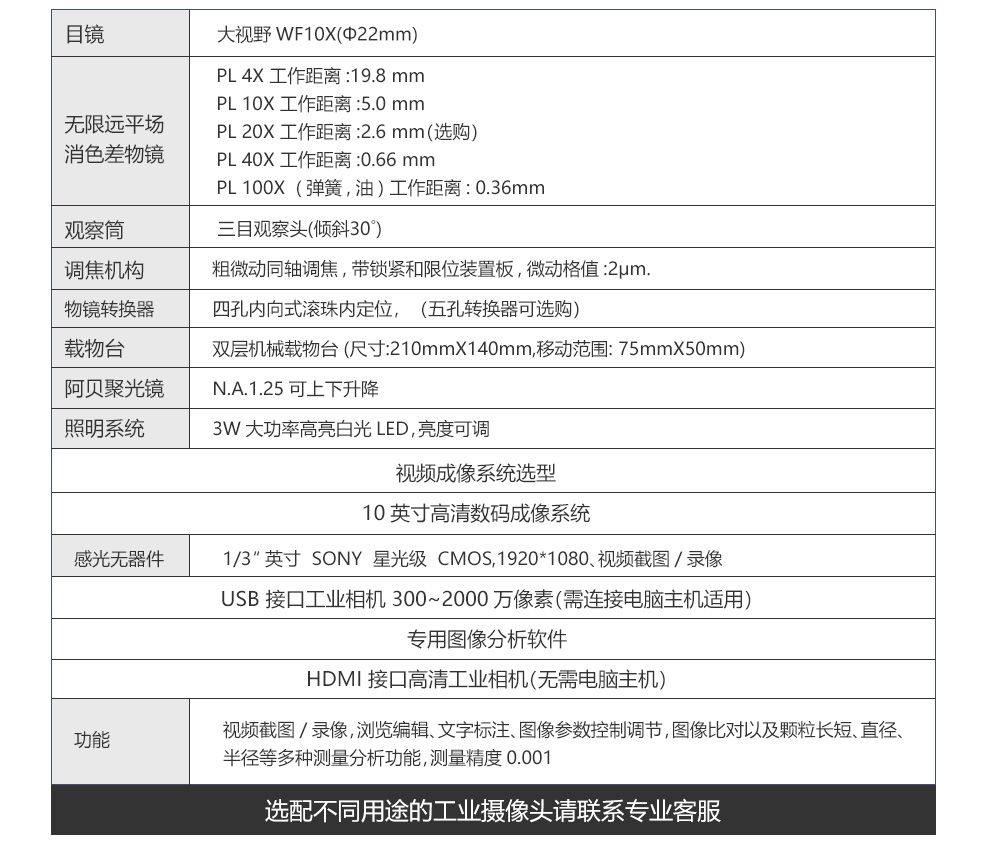 ★ 三目镜筒可同步目视观察与显微摄影。